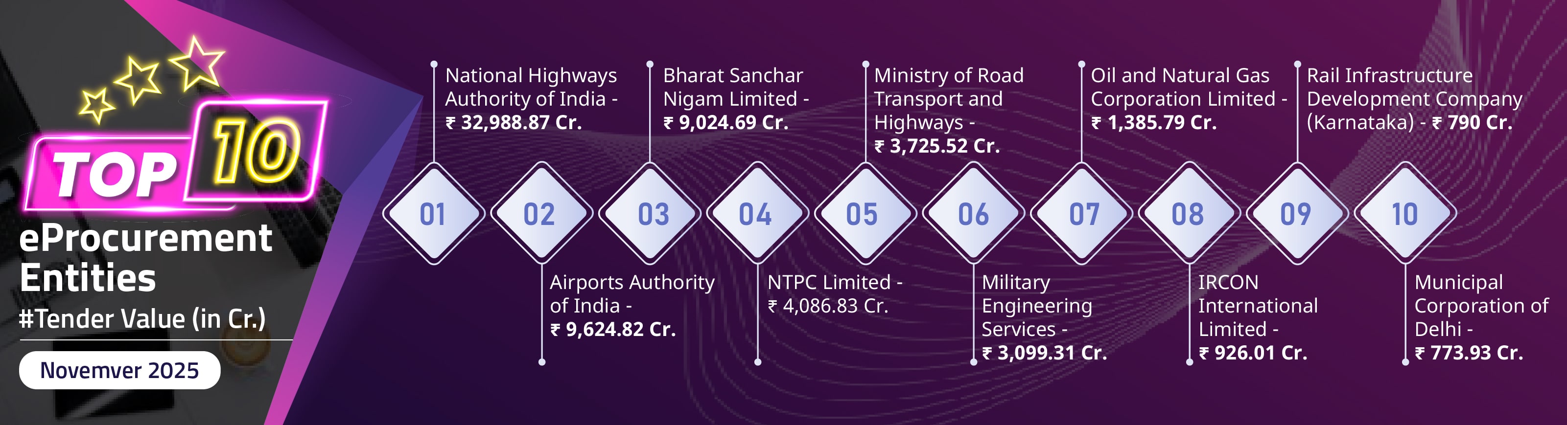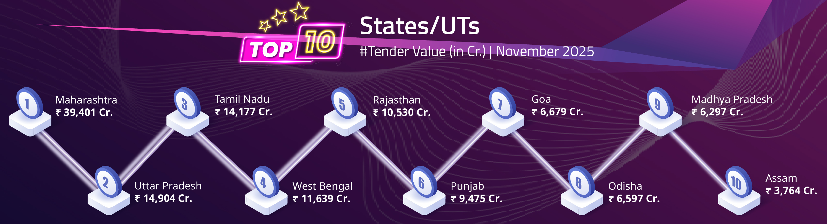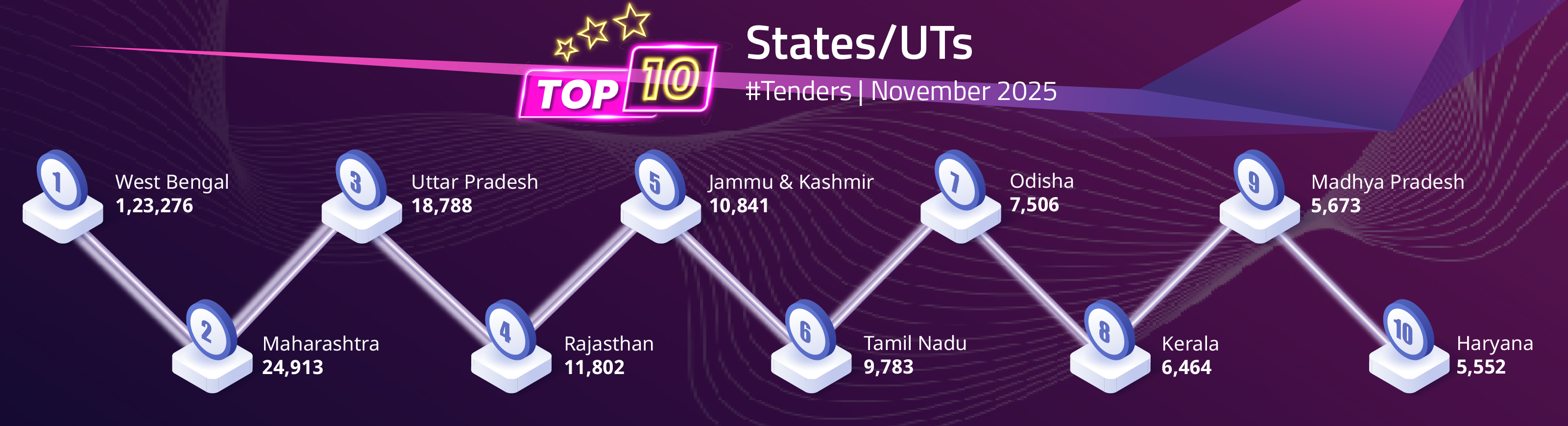 image/svg+xml 1,57,28,303 Total Tenders Published 2,569Billion Value of Tenders 31 States and UTs 1,00,000+ Mobile App Downloads 1,00,000+ Mobile App Downloads 2,78,296 Avg. Monthly Visitors 6,00,000 Registered Users 800+ Govt Entities Using